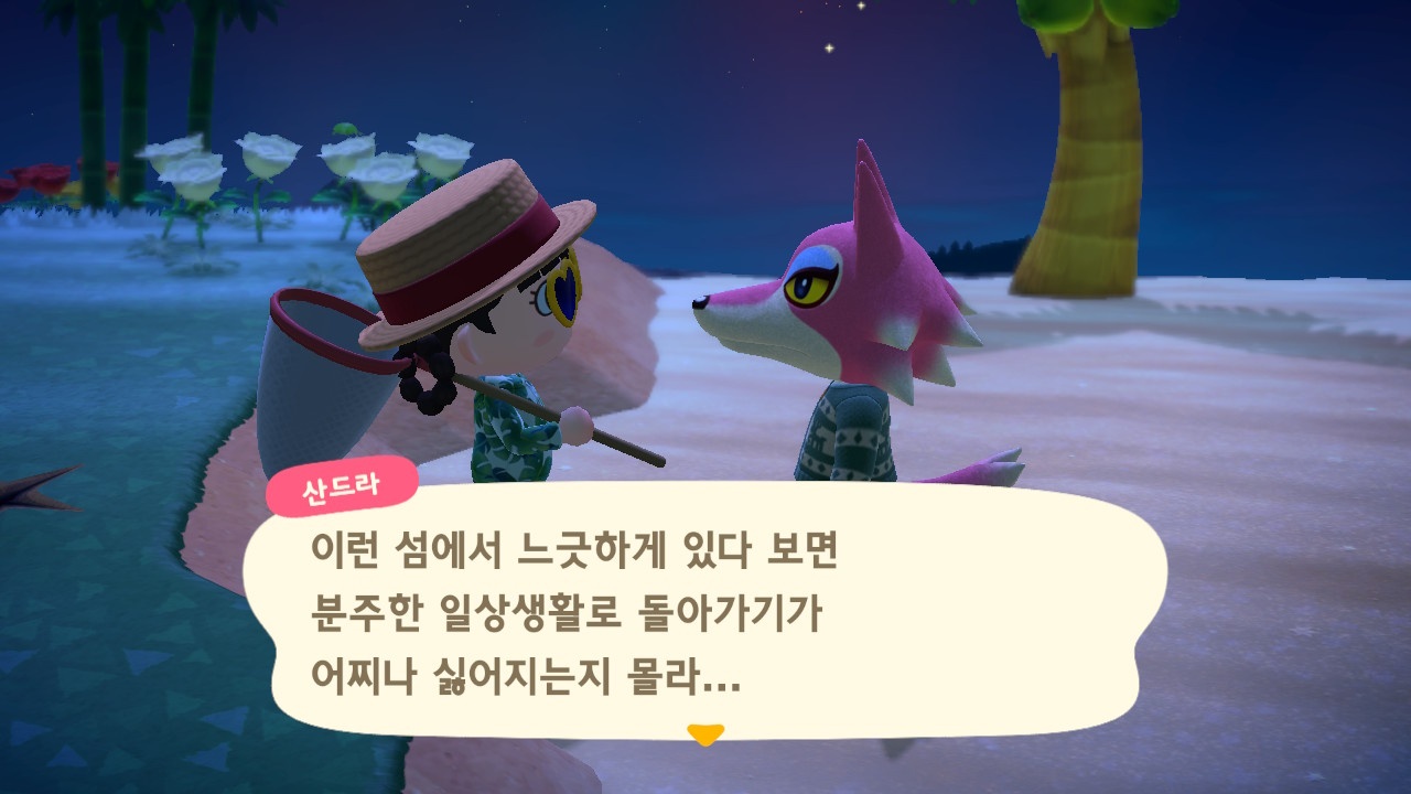 우리 섬에 방문한 사람(?)들과 함께 사진을 찍었습니다🤩 먼저 깨빈! 흩어진 영혼을 5개 모아주면 선물을 주는 깨빈😎 가끔 영혼 찾기가 너무 힘들어요😥 카페에서 만난 무파니! 무 다팔고 쉬는 중인가 봐요😄 매주 토요일 섬에 찾아와서 멋진 공연을 보여주는 K.K! K.K가 오는 날이면 주민들이 옹기종기 모여서 구경을 합니다😄 곤충을 비싸게 사는 레온! 곤충 잡을 때마다 창고에 저장해뒀다가 레온이 오면 한꺼번에 팔아요😁😁 가리비를 주면 한 마디를 꼭 해주는 해탈한. 가끔 무슨 말인지 못알아 들을 때도 많아요😂😂 마지막으로 사하라! 러그랑 벽지, 바닥을 파는데 가끔 강매 당하는 것 같기도... 섬에 방문하는 주민들은 부옥이도 있고, 저스틴도 있고 죠니, 고숙이 등등이 있지만 사진을 찍어 놓은건 이것뿐이네요😰 ..
